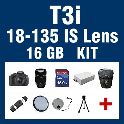 Canon EOS Rebel T3i 600D 18 MP CMOS Digital SLR Camera Body with Canon EF-S 18-135mm f/3.5-5.6 IS Lens + 16 GB Memory & Accessories Bundle?Canon EOS Digital Rebel T3i - 600D Camera Body The EOS T3i is Canon's latest Upper-Entry Level Digital SLR Camera. It is allows shooting outdoors as well as indoors settings and it is most suitable for taking pictures of pets, children and wildlife as well as extreme sports. The T3i allows continuous shooting at 3.7 (fps).