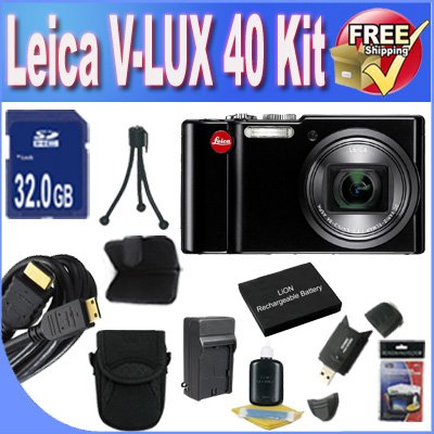 Leica V-Lux 40 14.1 Megapixel Compact Digital Camera with 20x Optical Zoom, 24-480 mm Leica DC Vario-Elmar Lens, 3 inch Touch Screen + Extended Life Battery + External Rapid Travel Quick-Charger + 32GB SDHC Class 10 Memory Card + USB Card Reader + Memory Card Wallet + Deluxe Case w/Strap + Mini HDMI to HDMI Cable + Accessory Saver Bundle!