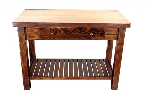 Bradley Ray River Island Unfinished 4244?Enjoy beauty and exquisite craftsmanship with the Unfinished Ray River Island. A A solid Oak butcher block top crowns a simply designed Pine body that features two towel racks, a large drawer, and a slatted shelf for extra storage. Locking casters available.