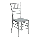 | ✚✚✚ Flash Elegance Stacking Resin Chiavari Chair Quantity: Set of 32, Finish: Silver 32LEL7CSLVRES Quantity: Set of 32, Finish: Silver Features: -Chiavari chair. -Available in several finish. -Made of highest form of resin available, k-resin. -Stainless steel inner frame. -Seat constructed of ultra-strong polycarbonate. -Anti-static UV treated paint finish resists fading and discoloration. -No sanding, re-painting or staining needed. -Stacks eight high. -Designed for indoor and outdoor use. -Cushions are also available for this item: Black and white (model number lelcwhite). Specifications: -Overall dimensions: 35.75" H x 16.5" W x 18.5" D. -Weight capacity: 1000 lbs Static load. -Seat size: 18" H x 15.5" W x 16" D. -Back size: 19" H x 15" W.