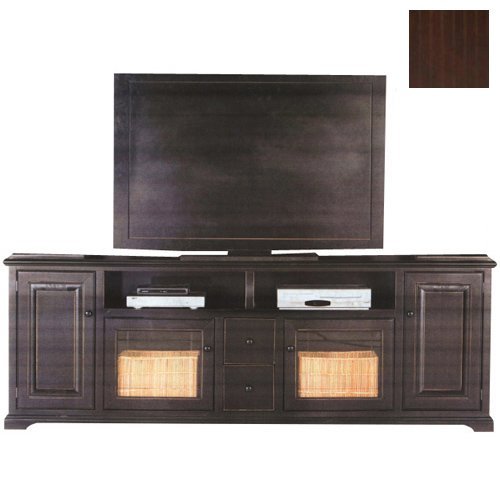 #The Savannah collection offers style from a bygone era. Raised panel wooden doors, pewter hardware, heavy arched moulding and hardwood frames make for an elegant design, available in painted or rich stained finishes. Color: European Coffee. 2 DVD Drawers. 2 Glass Panel Doors. 2 Raised Poanel Doors. 2 Fixed Wood Shelves. Made from poplar, birch solids and veneers. Dimensions: 32 H x 90 W x 17 D.