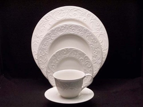 #Eight 5 Pc Place Settings - Our Popular Opal Innocence Pattern Goes Casual! Here, The Scroll Motif Is In Raised Relief Against Pristine, White-Bodied Porcelain - Microwave And Dishwasher Safe - Made In China