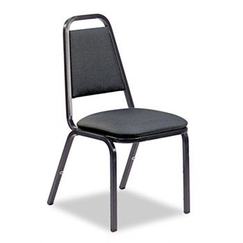 Vinyl Upholstered Stacking Chair, 18 x 22 x 34-1/2, Black, 4/CartonSit, stack and store! Great for classrooms, lunchrooms and training rooms. Extra-thick padded seat provides extra comfort. Strong, 7/8-inch tubular steel frame. H-braced rear legs for added support.
