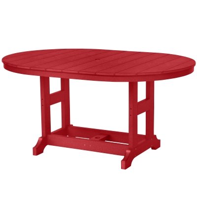 Berlin Gardens Bar Height - Garden Classic Sunflower Table - Scarlet Red?This bar height table is part of the Garden Classic Sunflower collection and it is intended for any of our bar chairs. At more than 5 ft long, this table is ideal for gathering six people or to offer four guests more room for dining. It features an umbrella hole with matching plug on table top and an umbrella hole on base with knobs for easy tightening. This table is also reinforced with an ultra light aluminum frame for added strength and durability. It is made from poly resin, a recycled HDPE plastic that prevents bacterial growth, mildew and that is easy to maintain. As with all Berlin's outdoor furniture, it can withstand sand and salt water, it is UV stabilized to prevent fading from sunshine, it is maintenance free, will not crack, split or splinter.