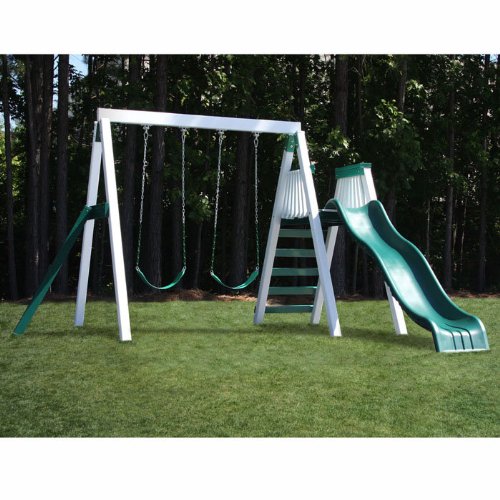 Features100% SPLINTER FREE SYSTEM IS TRULY MAINTENANCE FREE LUMBER!Set Includes: Swing'n Monkey has a 2 position 8' swing beam and a 54" Deck and 9' SlideConforms to ASTM standards for Residential Playground equipment.Cleans up easily with water and bio-degradable cleaner like Simple Green.additional information
