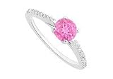 | ✚✚✚ Pink Sapphire and Diamond Engagement Ring : 14K White Gold - 0.50 CT TGW Size 4.5 This engagement ring set with round pink sapphire in the center and is accented by smaller prong-set diamonds. Made in polished 14K white gold & has a total weight (TGW) of 0.50 carat and also available matching wedding band model no. W3062BW14D...Please note: Normal shipping time is for the average ring size (Women - size 6, Men - size 10). If you order a different size, the ring will be custom made to that size and will take longer for shipping.......Please note: Normal shipping time is for the average ring size (Women - size 6, Men - size 10). If you order a different size, the ring will be custom made to that size and will take longer for shipping...