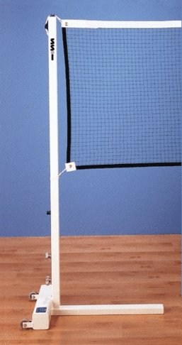Portable Badminton 1 Court System (Two Posts)?The SSI portable badminton uprights are built with the same attention to details as our volleyball systems. This economical system sets up quickly and easily. Weighted base with T-bar keeps posts in place. Solid rubber casters allow you to effortlessly move your upright to and from your storage area. Uprights are constructed of 1 1/2" square steel tubing which is powder coated in a durable white finish.