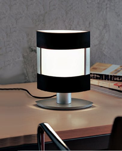 #Product description: - The New York table lamp has been designed by Sergio Sartorello for Sillux. The New York series comes with a curved glass lampshade and is available in three colors. The frame is lacquered gray aluminum. The New York collection is a beautifully crafted, sleek design with emphasis on simplicity. available in two sizes. - Details: - Manufacturer: - Sillux - Design: - Sergio Santorello - Made in: - Italy - Dimensions: - small: Height: 10 1/4 - (26 cm) X Length: 8 - (20 cm) - large: Height: 19 5/8 - (50 cm) X Length: 10 1/4 - (26 cm) - Light bulb: - small: 1 x 60W Incandescent - large: 1 x 75W Incandescent - Material - aluminum, glass