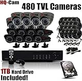 HQ-Cam® 16CH H.264 Real-time Network Security Surveillance DVR Recording System With 16x 480 TV Lines Night Vision Weatherproof Cameras Included 1 TB HDD?Power Supply and Cable