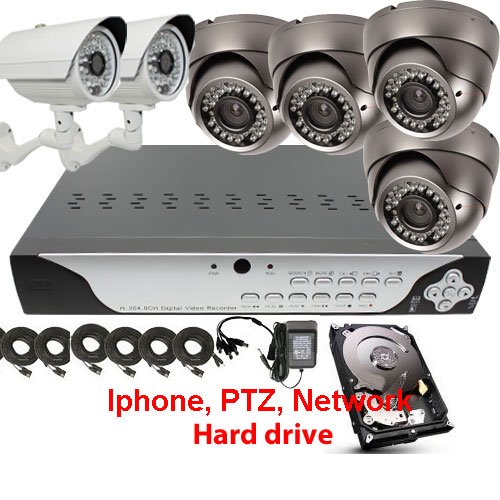 | Onsalecctv 8 Channel H.264 DVR + (2pcs) Weatherproof Outdoor Camera, 1/3" Sony Ccd, 600 Tv Lines. 3.6mm Lens, Ir Led, 131 Ft Ir Distance. Wdr(wide Dynamic Range). OSD Menu. Low Illumination 0 Lux (With Ir LED On). + (4psc) Professional 1/3" Sony Exview HAD CCD Ii with Effio-e DSP Devices Camera. 700 Tv Lines, 2.8~12mm Varifocal Lens, 36pcs Ir Leds, 97 Ft Ir Distance. Wdr(wide Dynamic Range). OSD Menu. Great Image, Great for Entrance. + 6 Cables and Power Supply. Complete Set. #****Professional 8 Channel H.264 DVR, iPhone support, Real Time Recording, Motion Detection Recording Function, USB Backup, VGA Monitor, PTZ Control 8 Channel H.264 DVR PTZ Control Motion detection recording function Manual/schedule/Motion Detection Recording Modes Time & date search easy access Live monitoring through internet from anywhere USB backup Easy navigation in OSD VGA output to LCD Monitor for better resolution ****Professional 1/3" Sony Exview HAD CCD II with Effio-E DSP Devices Camera. 700 TV lines, 2.8~12mm varifocal lens, 36pcs IR LEDs, 97 ft IR Distance. WDR(Wide Dynamic Range). OSD Menu. Great Image, Great for Entrance. New IR CCTV Camera? 1/3" SONY EXview HAD CCD II Enhanced Features and Fine Image Processor OSD/2D-DNR/BLC/MD/Privacy Masking Auto Gain Control Electronic Shutter Adjustment Great for indoor security